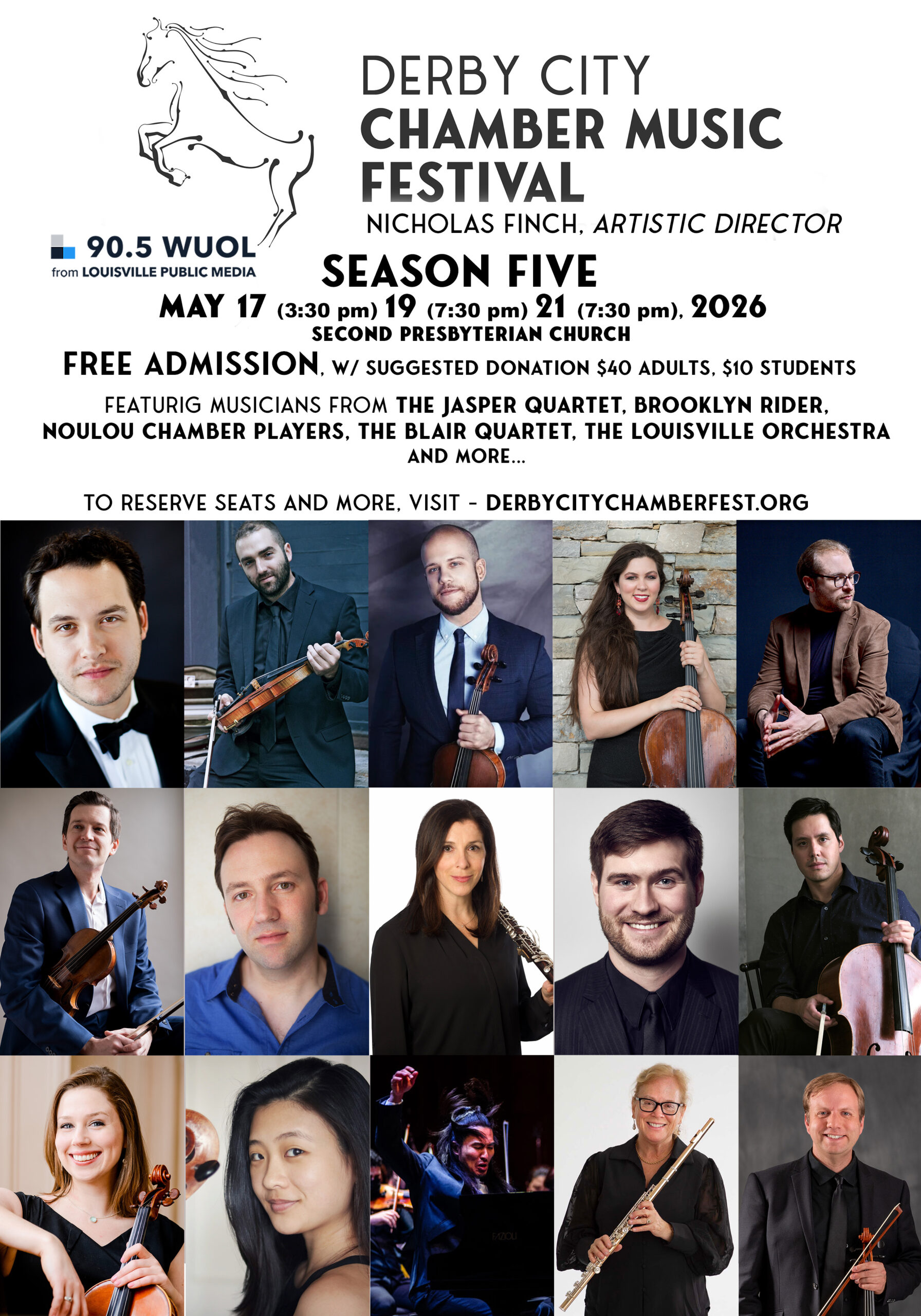 The Derby City Chamber Music Festival is where Beethoven and Bourbon collide, featuring some of the best young musicians both from around the country and right here in Louisville. Founded in 2022 by Louisville Orchestra Principal Cellist Nicholas Finch, our concerts will take place on May 16, 18, and 20th at Second Presbyterian Church. This festival is a a dynamic place for innovation, cross-pollination, and musical exchange, to bring some of the nation’s greatest musical artists to Louisville and to present some of Louisville’s greatest artists to the wider musical world.